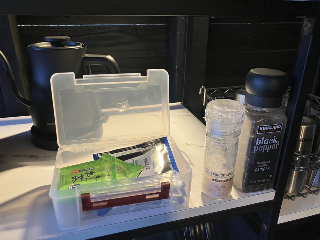 こちら、スタッフ様が配膳してくださり、キャビン内の我々にお声がけくださいました。