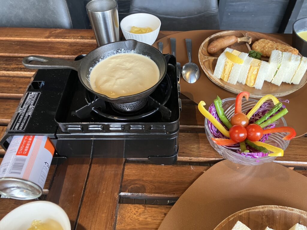 分厚いサンドイッチも、温かいバーニャカウダも、とってもっても美味しかったです^^ グランピングにふさわしい素敵な朝食でした。