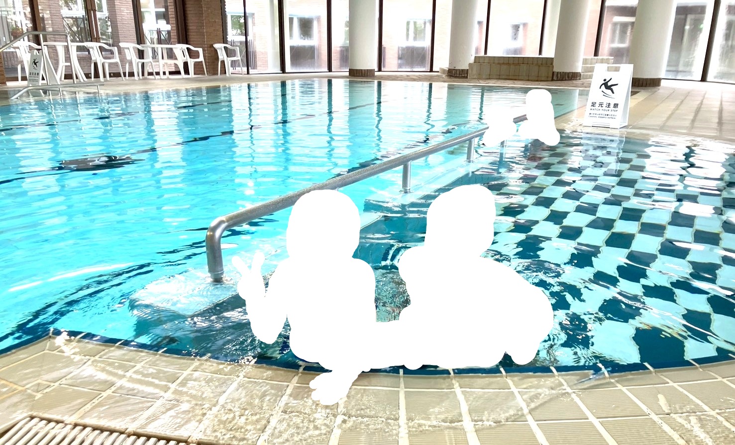 いざプールへ行くと、なぜか我が家以外の利用者は外国人の子連れ家族ばかりでした。てか外国人(ヨーロッパ系?)多いな、なんでだ。